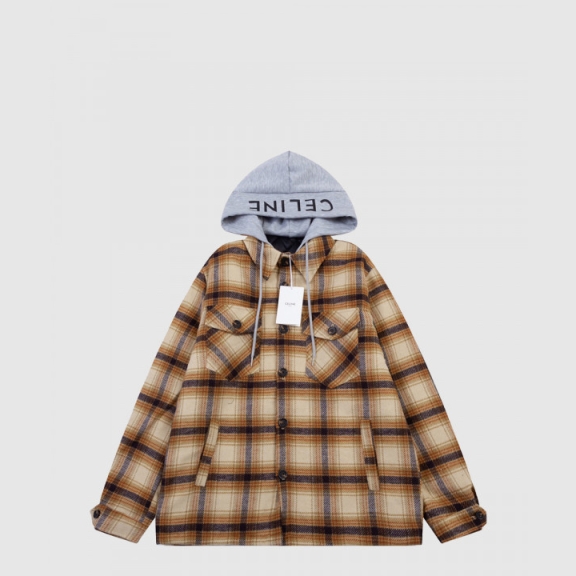 후드 오버셔츠 체크 울 브라운