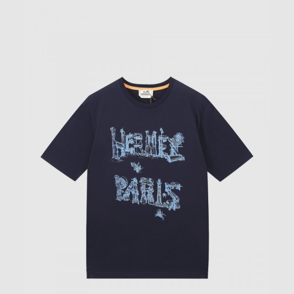에르메스 로고 프린트 반팔 티셔츠