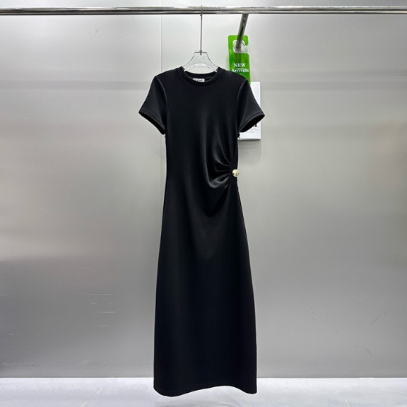 / 로에베 골드 버튼 헵번 스타일 플리츠 드레스