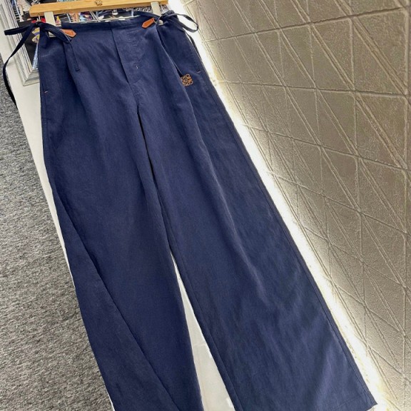 / 로에베 끈이 달린 코튼과 리넨 와이드 레그 팬츠