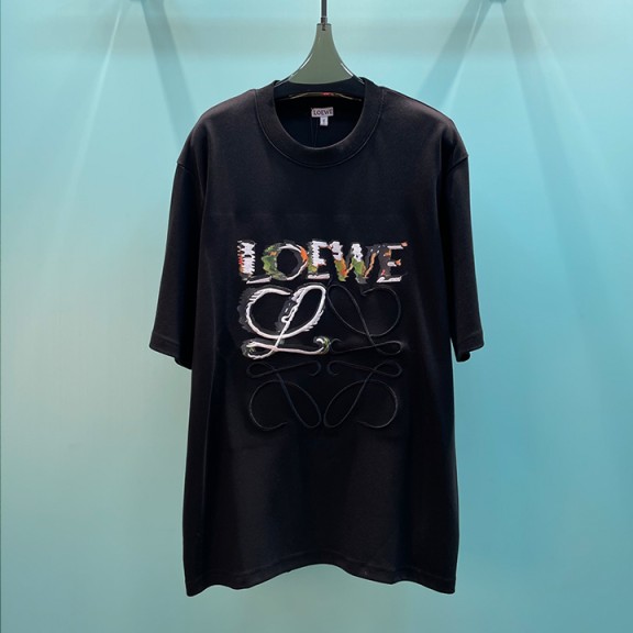 로에베 남녀공용 프린트 자수 티셔츠