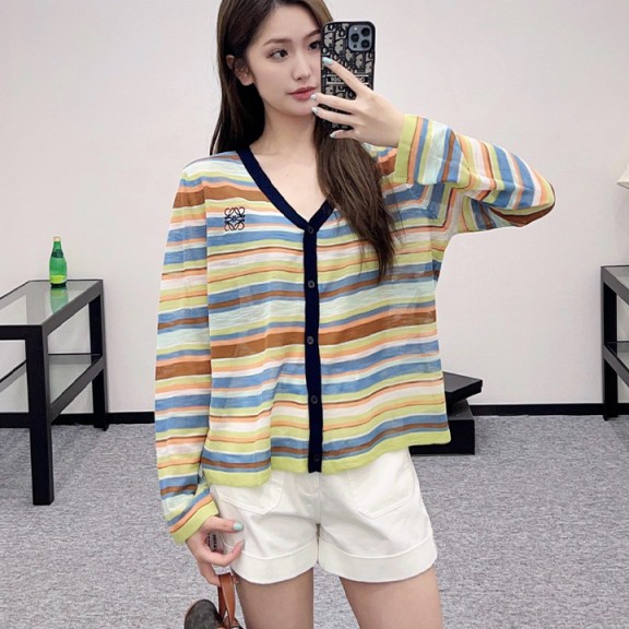 / 로에베 화사한 컬러풀한 스트라이프 니트 가디건