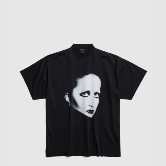 발렌시아가 순면 워싱 뉴파리 프린트 티셔츠