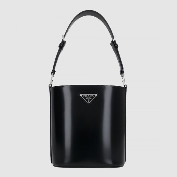 프라다 쁘띠색 누아르 리나일론과 나파 가죽 미니 버킷백 1BE088