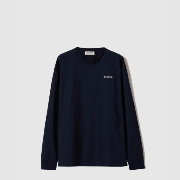 미우미우 롱 슬리브 코튼 저지 티셔츠