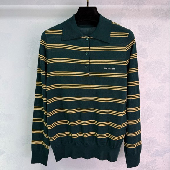 / 미우미우 니트 옷깃 긴팔 클래식 스트라이프