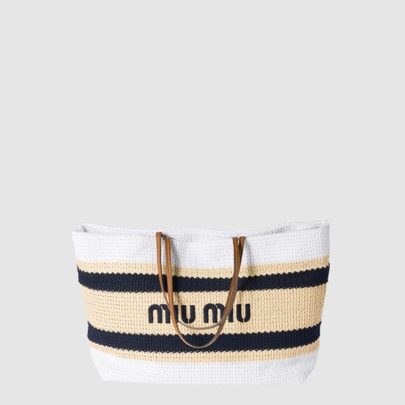 미우미우 라피아 앤 코튼 토트백 5BG228