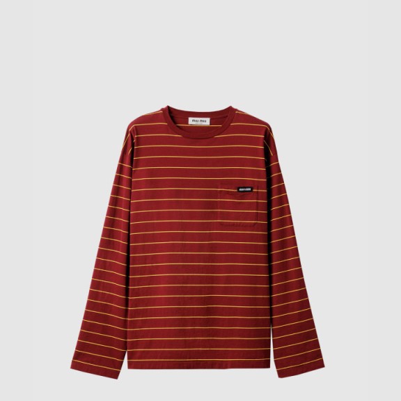 미우미우 롱 슬리브 코튼 저지 티셔츠