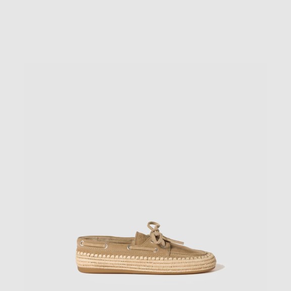 미우미우 스웨이드 및 라피아 보트 슈즈 5D378E