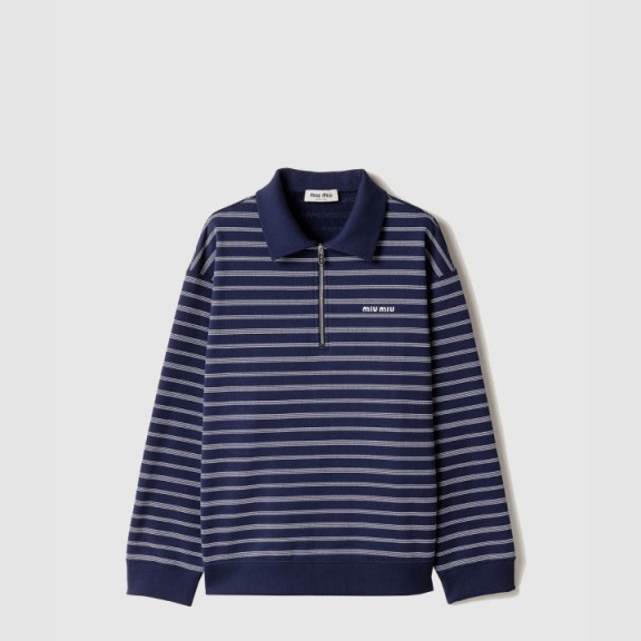 미우미우 스트라이프 지퍼 폴로 셔츠