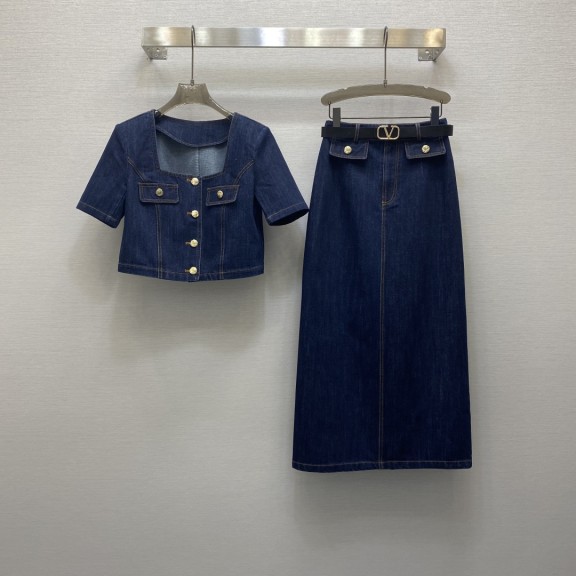 / 발렌티노 스퀘어 칼라 숏 재킷 + 롱 스커트 슈트, (벨트 포함)