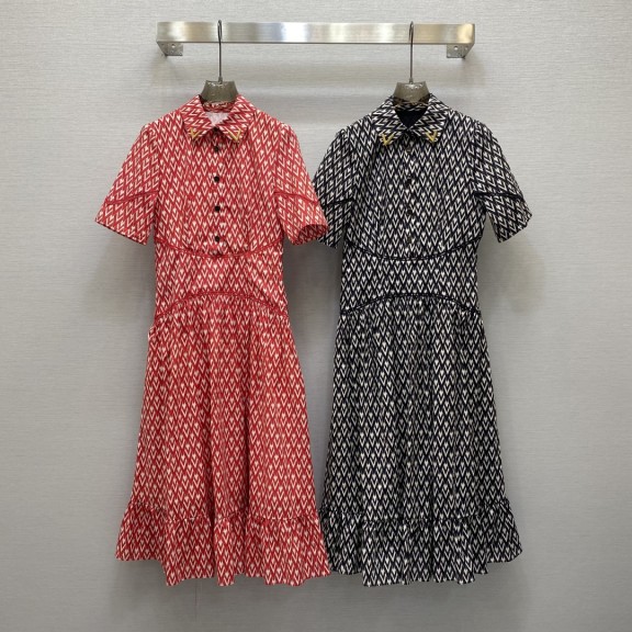 발렌티노 옷깃 무거운 자수 분할 디자인 디지털 인쇄 드레스 수량
