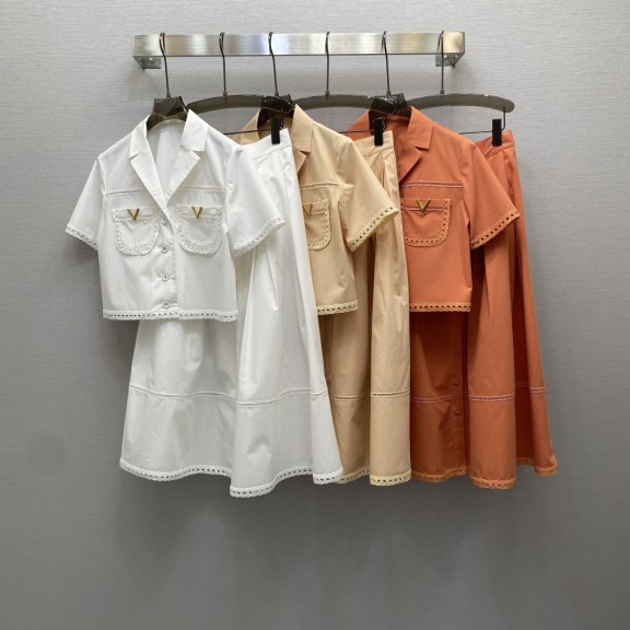 / 발렌티노 헤비듀티 포지셔닝 홀로우 자수 셔츠,롱 스커트 세트