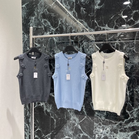 샤넬 그라데이션 타월 자수 더블 C 니트 베스트