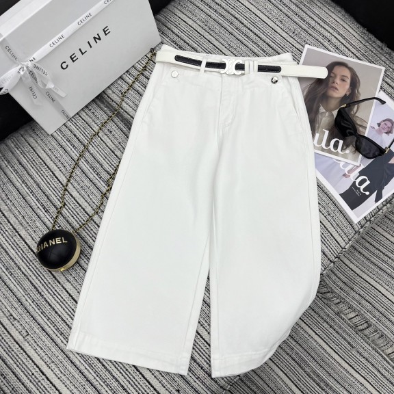 셀린* 자수 레터 포켓 데님 크롭 팬츠