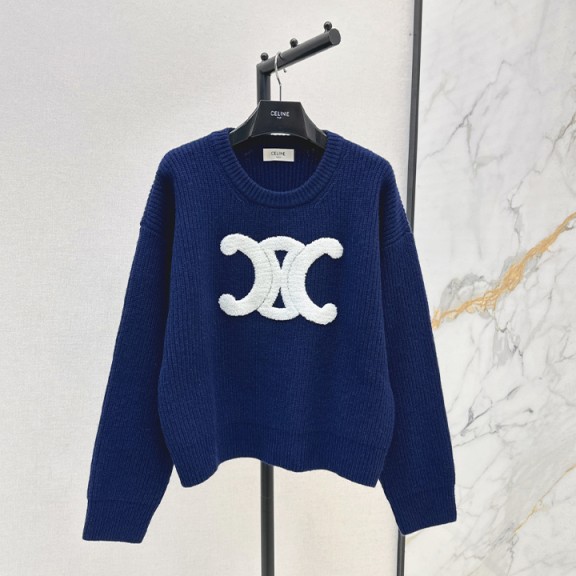 셀린* 100% 수입 울 원사 질감 가을 겨울 아크 드 트리옹프 로고 울 스웨터