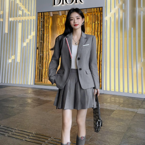 톰브라운 울 싱글 재킷 블레이저 플리츠 미니 스커트 투피스 세트