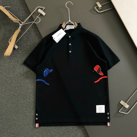 톰브,라운 자수 강아지 캐릭터 캐주얼 반팔 티셔츠