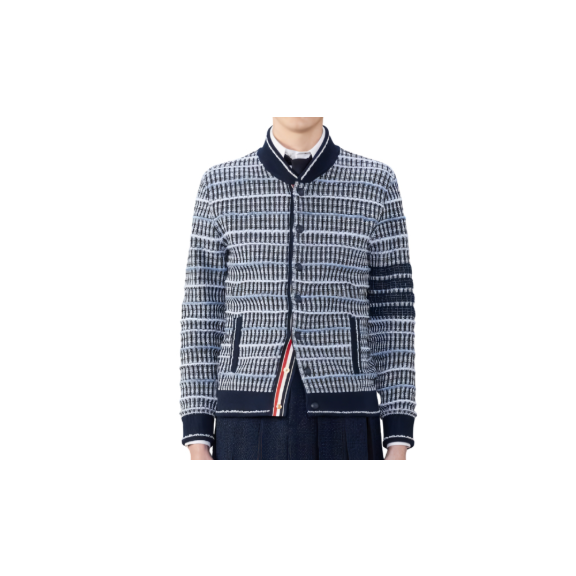 톰브라운 코튼 앤 리넬 트위드 자카드 4바 봄버 재킷