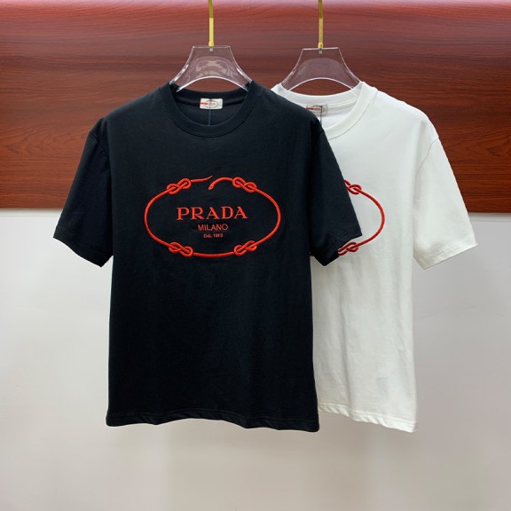 / 프라다 로고 자수패턴 반팔 티셔츠