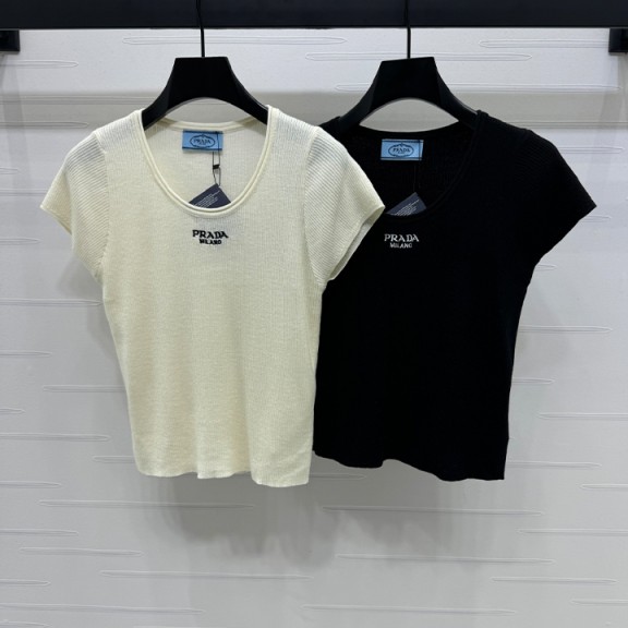 / 프라다 로고 자수 니트 반팔
