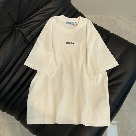 / 프라다 삼각형 로고 자수 문자 반팔 티셔츠