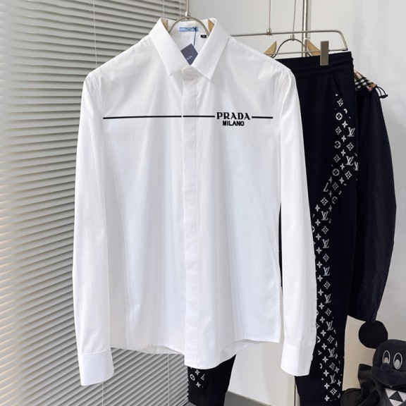 프라다 최신 남성 필수 셔츠, 100% 천연 면 소재