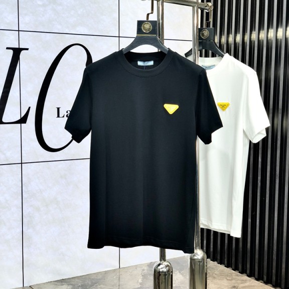 프라다 최신 반팔 라운드넥 티셔츠, 고급 맞춤 디자인, 아방가르드 패션