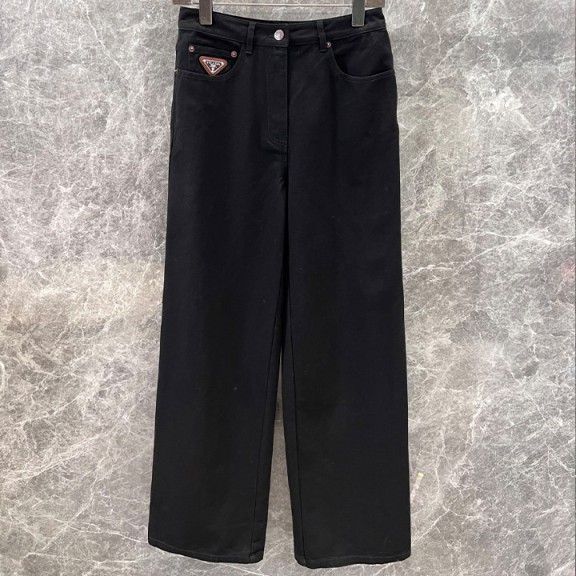 프라다 트라이앵글 로고 블랙 스트레이트 진