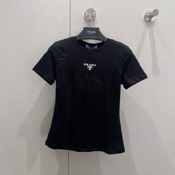 프라다 로고 자수 니트 반팔