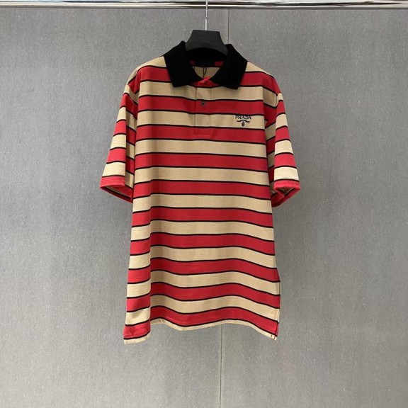 프라다 2025 밀라노로고 스트라이프 폴로 티셔츠 레드 컬러 수량