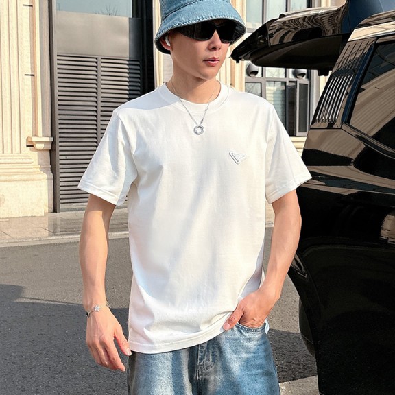 프라다 2025 봄여름 신상품 유니섹스 커플 스타일 캐주얼 루즈 코튼 라운드넥 반팔 티셔츠 수량