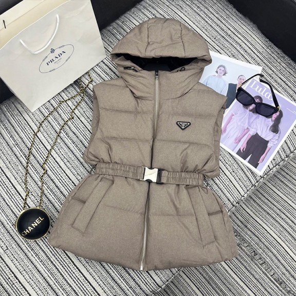 프라다 90% 화이트 구스 다운 후드 다운 베스트